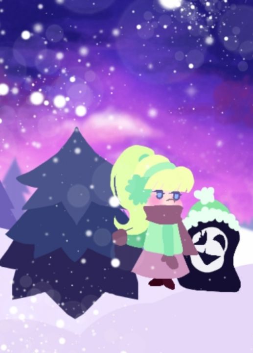 я ещё в декабре планировала сделать открытку зимнюю по юме никки и попробовать какой-нибудь маленький тираж продать. Уже середина января, я всё ещё с ней вожусь (я чутб позже поменяю расположение персов, не обращайте внимания, что они так тупо парят хд)