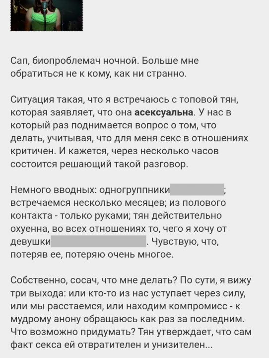 С конца августа так и не начал пить таблетки, что привез с собой. Единственный прогресс в том, что я выписал на бумажке как мне их пить. Какие-то блистеры повредились при перевозке. Спина постоянно дает о себе знать даже если нихуя не делаю или когда просто валяюсь на боку может заболеть ибо не так лег. Из-за сестры ем слишком много сладкого, щеки и скулы постоянно высыпает, более чем уверен что это от шоколада так как только после него сыпь появлялась. Мешает ли мне это его есть? Нет. Приносит ли он мне радость? Нет. Просто ем потому что могу, гонимый фантомами былых ощущений. Хотя бы не ем тот, от которого в горле сразу изжога начинается, тоже думаю аллергическая реакция. Пока болел заметил белый нашет на языке, думал это что-то после еды, почищу хорошенько язык и пройдет. Не прошло сколько бы не тер его зубной щеткой. Не знаю сколько дней прошло уже и только сейчас проходить начало вроде как. Не высыпаюсь ложась в 4-6 утра каждое утро. Не понимаю чем я вообще питаюсь ибо нормальную еду ем не частно. Вчера(уже позавчеа) готовил драники. Заебался. Муку купить забыл, натер кабачок к картохе, лучшеб не покупал его, все разваливалось к хуям, месилось в кашу. Еще ублюдская склвородка что я покаал не для жарки уж точно. Половину подарил почти в кашу, сходил на соседнюю кухню просить муки немного, стало лучше, но сменить сковородку пришлось. Сестра в итоге пришла и сказала что не голодная ибо напихалась уже всяким, притом она же говорила что когда я уже их готовить пойду. Лучшеб забил хуй на это. 4:04 утра. Сегодня я расстроен больше обычного. С 8-8:30 до 11 вечера прождал нашу команду в игре ибо вместе ходим на данжи, они ушли, но так как нас больше 5, то ходим в пару заходов меняя людей. Так вот, про меня тупо забыли и разбежались спать пока я ждал, хотя беквально перед их заходом обсуждали кому нужно в данжи. За это время я успел сделать все мелкие дела, помочь людям и частично пройти с другими людьм то, что мне нужно. Давно уже чувство словно я там лишний и навязываюсь ибо я стал посредником между тем, что они все познакомились из-за того, что я юыл их общим знакомым и теперь я стал лишним звеном. Это видно даже в том, как здороваються приходя. Эксплуатируют еще моего игрового муженька. Чуствую себя совершенно бесполезным и ничтожным в этой компании. Да и в других тоже. Не знаю как долго еще буду играть и не кину ли. В данной ситуации не хочется подводить чела в паре, тем более что я его сам утащил в пару чтоб легче закрывать ипучие заказы усадьбы и не так грустненько было одному пока все парами играют. Использовал даже драгоценную брошку что собирал три месяца выкупая мелкие для синтеза у других игроков с трудом. 243 штуки в целом на нее ушло и это только 6 утровень с 9.. на 7 нужно еще две таких, синтез происходит из трех одинаковых. С брошками беда, а с кольцами и подавно все плохо ибо брошки однополым парам, а кольца разнополым. Хотя жеревосвязь, это как контрактсо руднечества пока свадьбы не было, а она только у разнополых доступна. Вообщем играть одному легче ибо можно уйти в любой момент и все. За три с половиной месяца ни с кем почти не общаюсь вне игры. Чуствую угрызения совести. Многое раздражает, наверное от недосыпа. Вечно уставший, кажется что упаду во вот и с концами.. либо просто не захочу больше встать, буду валяться посреди улици или дороги не в состоянии пошевелится