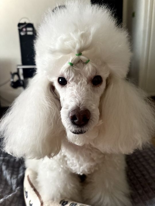 Начесала, завтра к грумеру. Не знаю, оставлять топ-нот или нет? Скорее оставлю, раньше всегда убирали ему под шапку, хочу попробовать, с бородой смешно смотрится