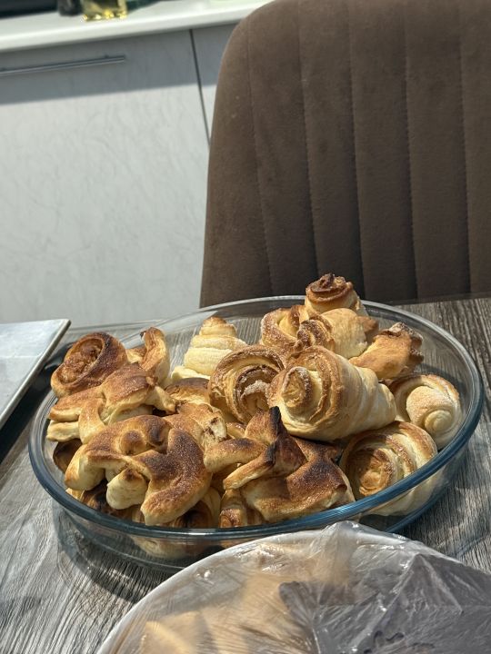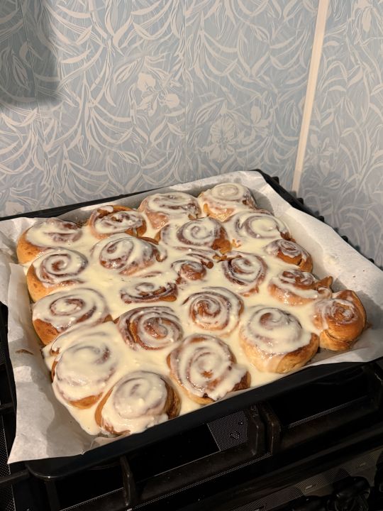 сделала родителям свои фирменные синнабоны и сегодня мы прям стрипухи яблочный пирог еще и коричнево-сахарные булки