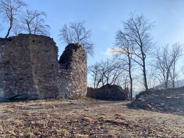 Есть стройная теория что это замок-убежище. Навело на кое-какие мысли. Большинство городищ в регионе пали от турок, но один, всего в 25км на север от Обишовского замка, стал руинами после феодальных драчек и налетов разбойников. Уж не из него ли?..