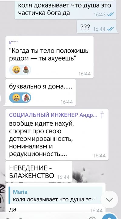 У нас сегодня пацаны устроили классическую массовую срачку уровня доцентов кафедры философии, удивляюсь, как до рукоприкладства не дошло, учитывая, шо длилось это вот всё половину рабочего дня.....
