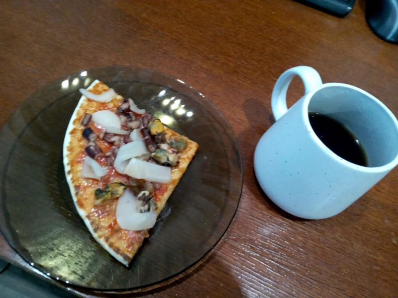 риготовила пиццу с морепродуктами (решила взять кусок на пробу - давно не готовила... ) и пирог с клюквой и смородиной (через 12 минут доставать буду). Фото пирога будет позже