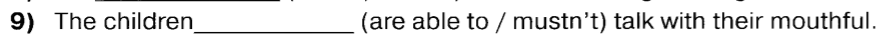 Вообще! Вообще в первом-то нужно бы The elephants can't stand the mice, а во втором The children mustn't talk with their mouths full.