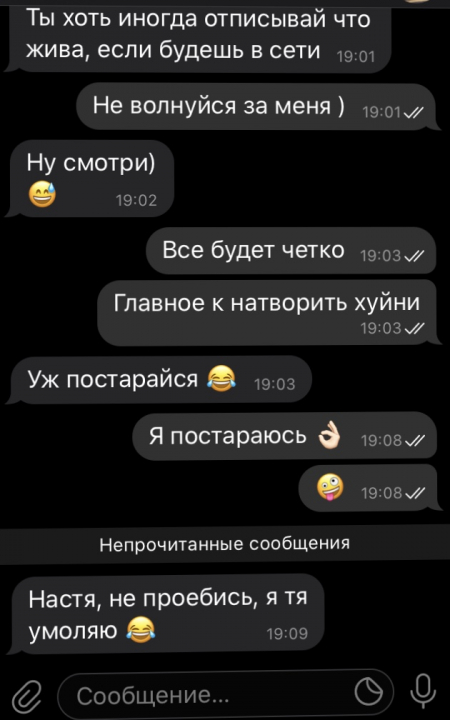 Как много зависит от гормонов! Поможет ли обычный разговор человеку в стрессе? Да! Только если это был разговор о том, что ему нужно начать заниматься своим телом, своим гормональным фоном. Без этого, я думаю, ценность психологических переписок равна....нулю целому хую десятому. Тут как карта ляжет. Успех переписки с психологом зависит от того, на какой стадии инкубационного периода находится человек относительно инсайта. У всех же по-разному длится этот период. Кто-то находит ответ за неделю, а кто-то тратит на поиски годы! Вероятность того, что переписка с психологом стала тем, из чего психика, озадаченная поиском ответа на подсознании, вычленит инсайт... блять, я не знаю. Либо эту вероятность невозможно вычислить, либо я опозорилась, продемонстрировав свои скудные познания в теории вероятности и математической статистике. Я делаю вывод: повлиять на состояние человека в негативном состоянии с помощью диалога нельзя. (Я намеренно не использую слово "депрессия", я также хочу сделать акцент на том, что повлиять на состояние человека с помощью диалога нельзя только в том случае, если у этого человека гормональный дисбаланс)