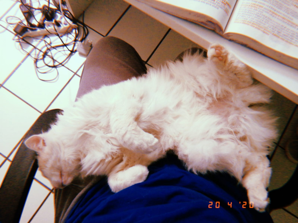 Кошка опять также сидит на коленях как вчера X)