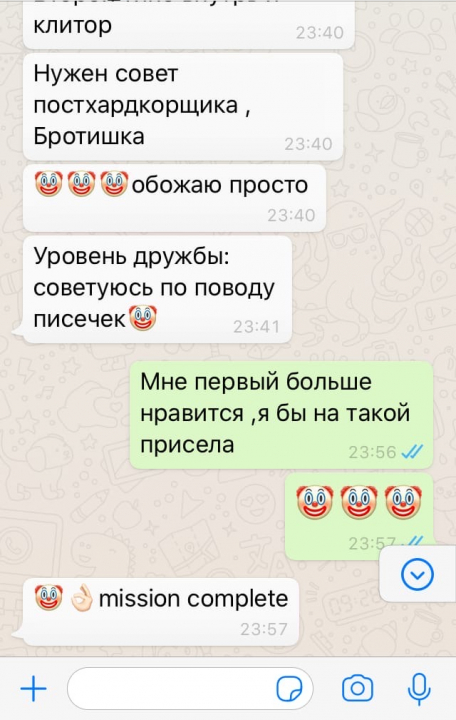 Чисто наше общение с подругой.У меня скоро память на телефоне от таких скринов закончится.Бля
