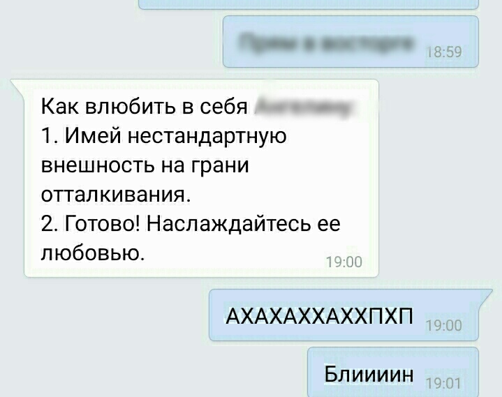 Когда она подкатила свои шары ко мне, я прифгела знатно, потому что она была вовсе не в моём вкусе и лицезреть в личке её псевдосексуальные фотки мне вообще не хотелось.