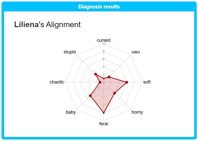 Хоть в обществе вы и одеваете на себя маску жесткого и закрытого человека, в душе вы ранимый и няшный. Тяжелая музыка типа рока или металла вам нравится, потому что так вы чувствуете себя сильнее. Вы эмоциональный, чувствительный и творческий. Поэтому, чтобы никто не увидел вашу мягкую душу, вы слушаете тяжелую музыку, накрывая себя черным панцирем с шипами.