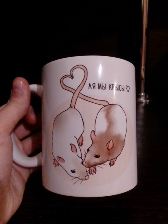 Прекрасная кружечка, о которой я давно обмолвилась в беседе!!! Во-первых я люблю собирать разные кружки, скоро они выселят меня из кухни, а потом уже и из квартиры. А во-вторых, я люблю крыс и для нас они ещё имеют значение: это символ моей любимой фракции в цене свободы